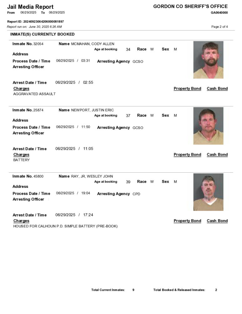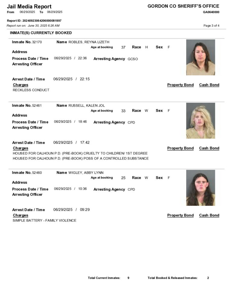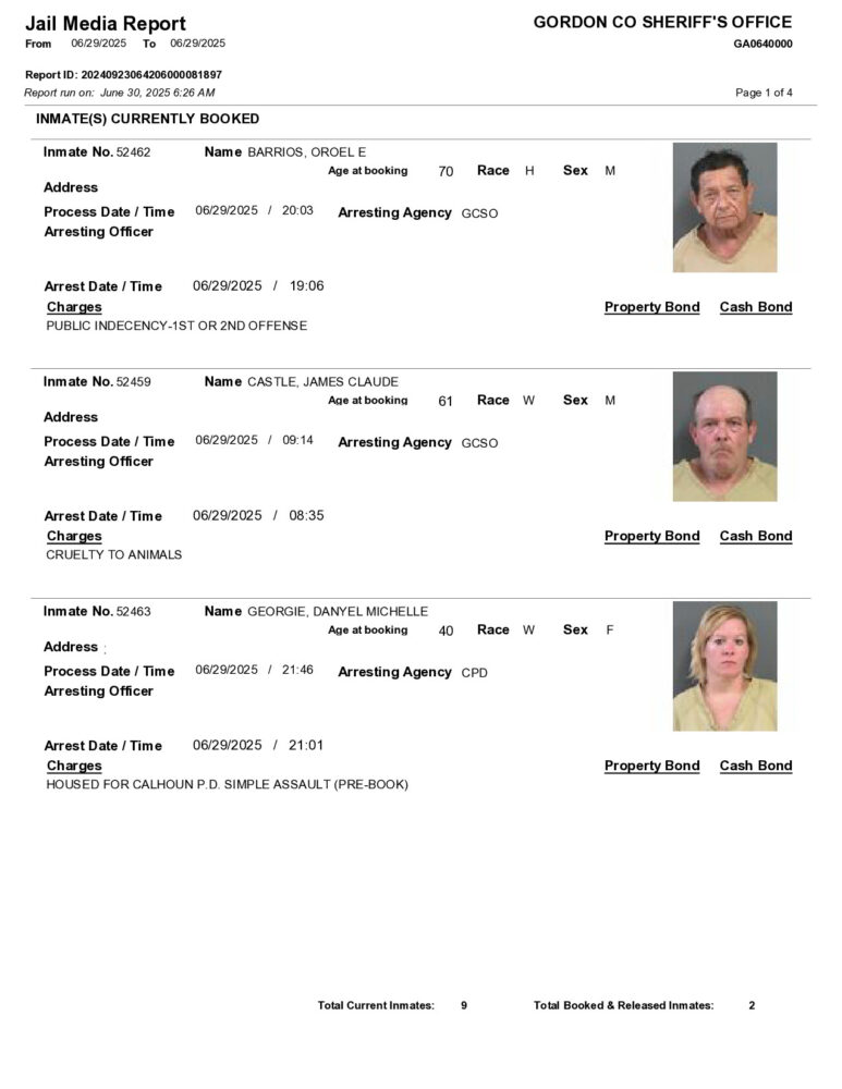 HomeArrest ReportsGordon County Arrest Report 6/30/25Gordon County Arrest Report 6/30/25Mon, June 30, 2025SHARE NOW ×❮❯