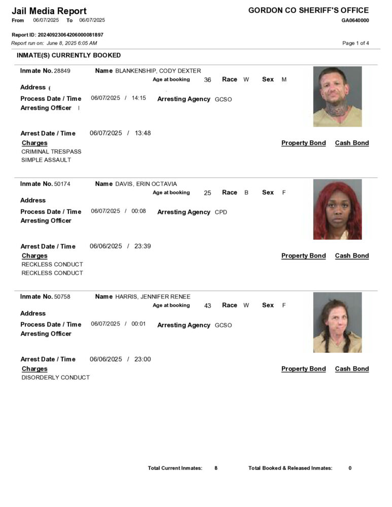 HomeArrest ReportsGordon County Arrest Report 6 7 25Gordon County Arrest Report 6 7 25Mon, June 9, 2025SHARE NOW ×❮❯