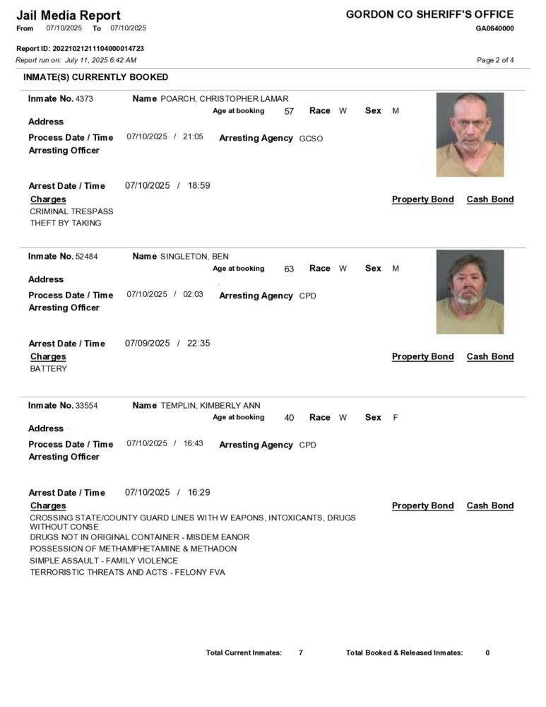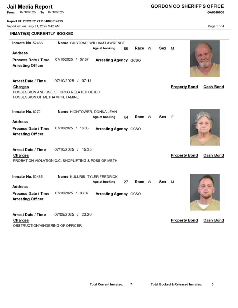 HomeArrest ReportsGordon County Arrest Report 7/11/2025Gordon County Arrest Report 7/11/2025Fri, July 11, 2025SHARE NOW ×❮❯