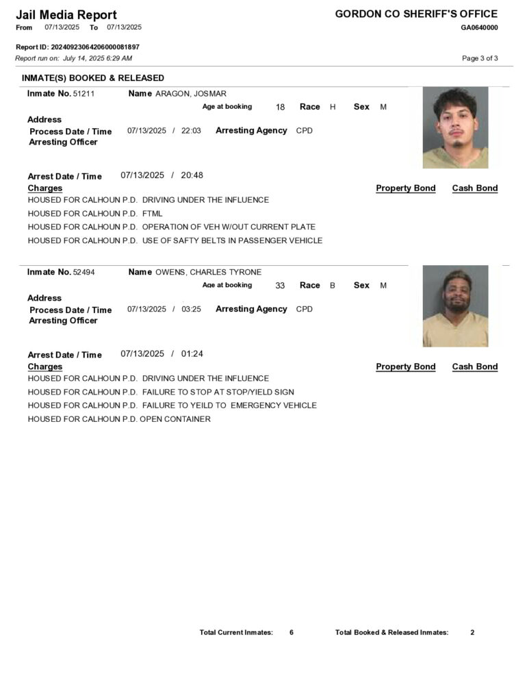HomeArrest ReportsGordon County Arrest Report 7/14/2025Gordon County Arrest Report 7/14/2025Mon, July 14, 2025SHARE NOW ×❮❯