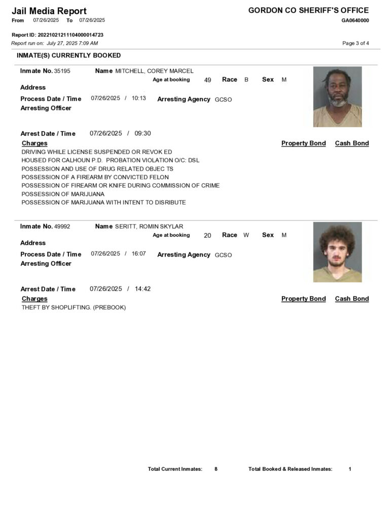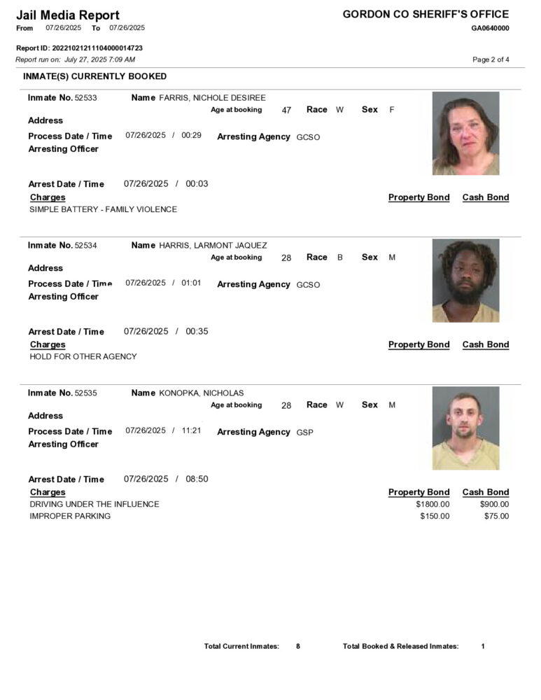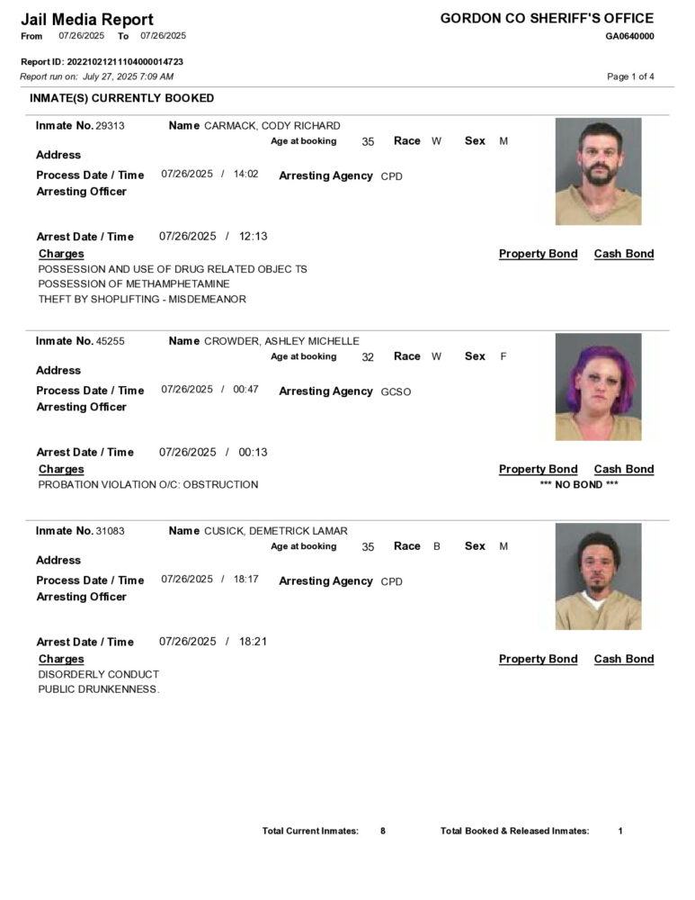 HomeArrest ReportsGordon County Arrest Report 7/27/2025Gordon County Arrest Report 7/27/2025Sun, July 27, 2025SHARE NOW ×❮❯