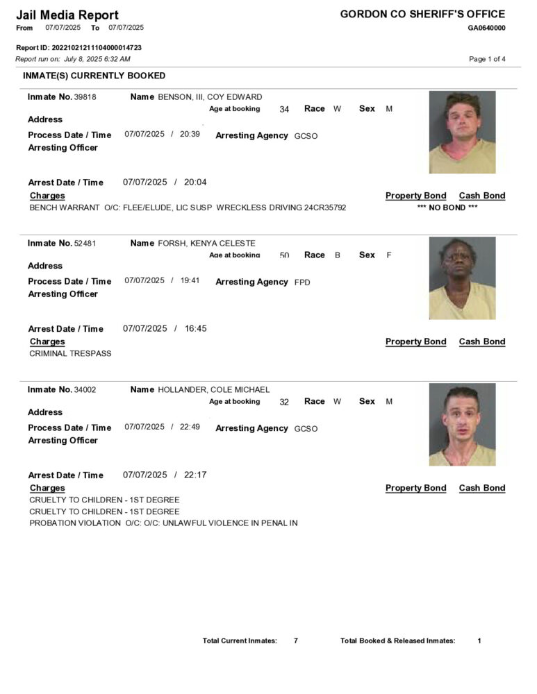 HomeArrest ReportsGordon County Arrest Report 7/8/2025Gordon County Arrest Report 7/8/2025Tue, July 8, 2025SHARE NOW ×❮❯