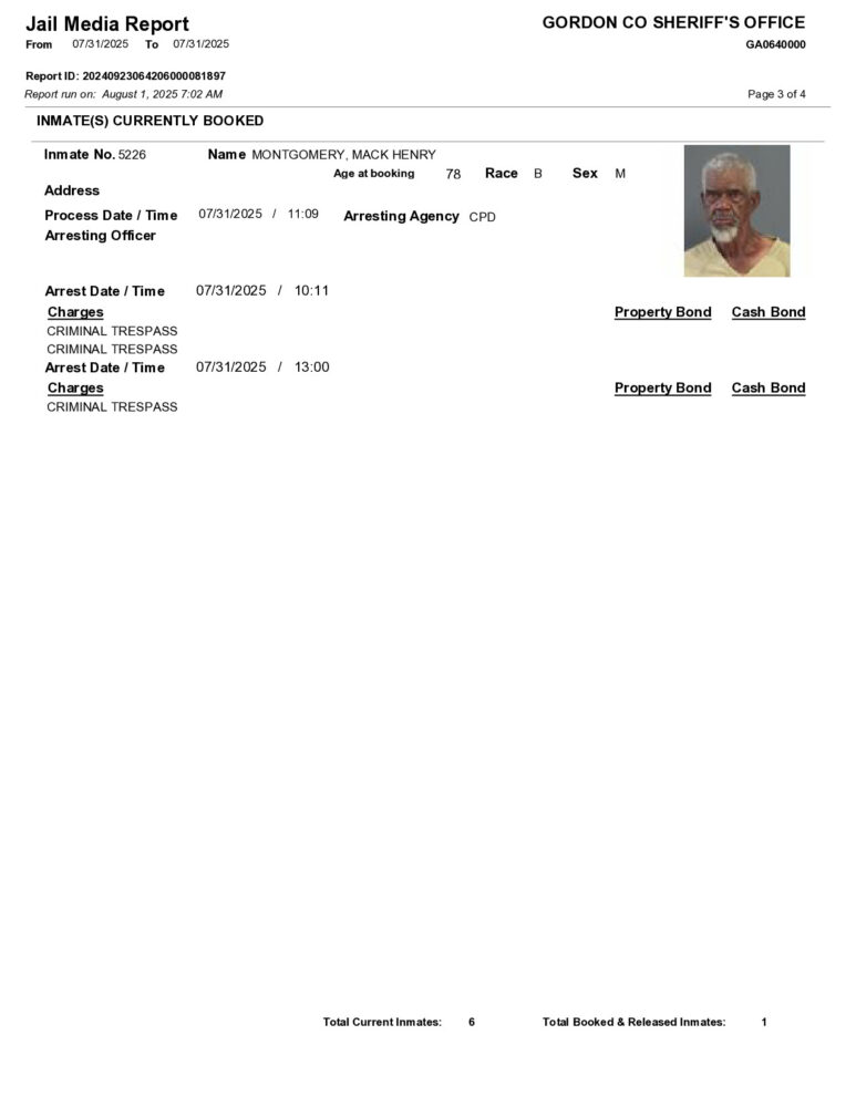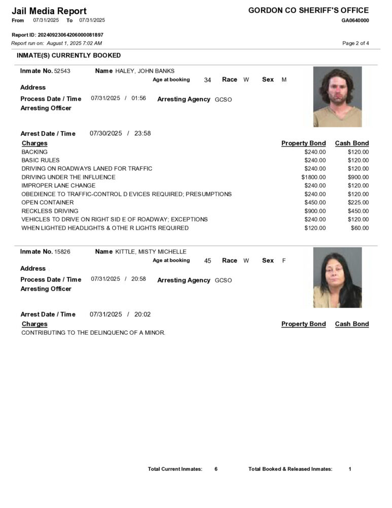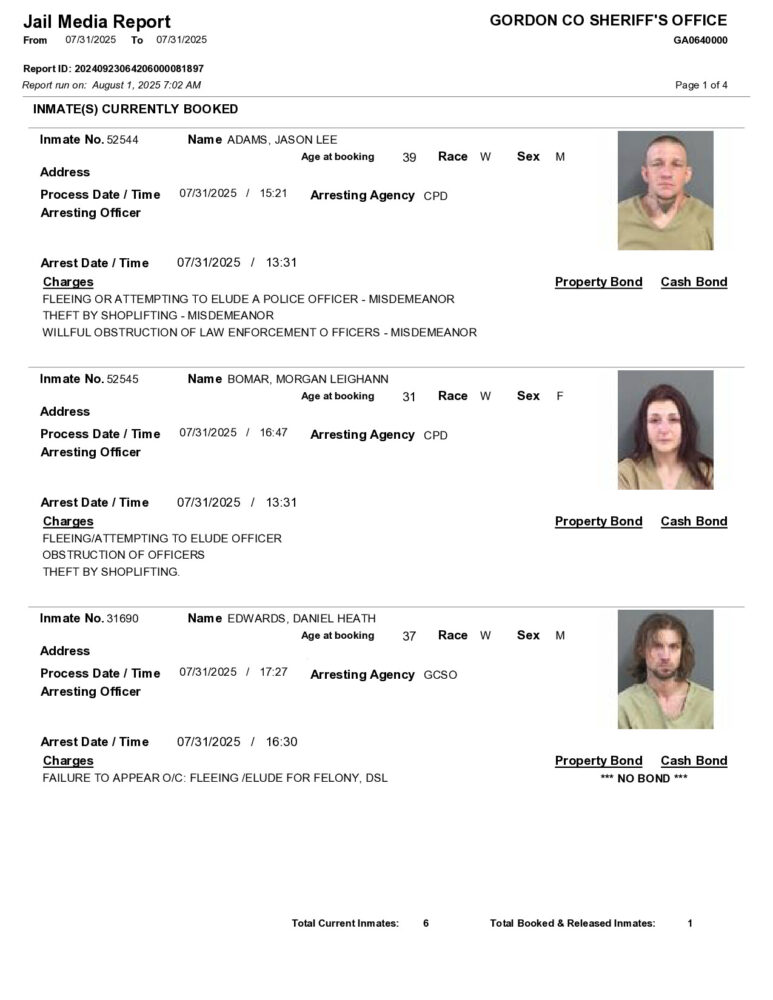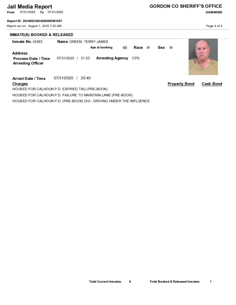 HomeArrest ReportsGordon County Arrest Report 8/1/2025Gordon County Arrest Report 8/1/2025Fri, August 1, 2025SHARE NOW ×❮❯