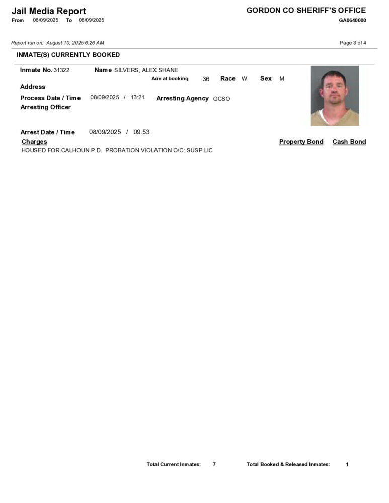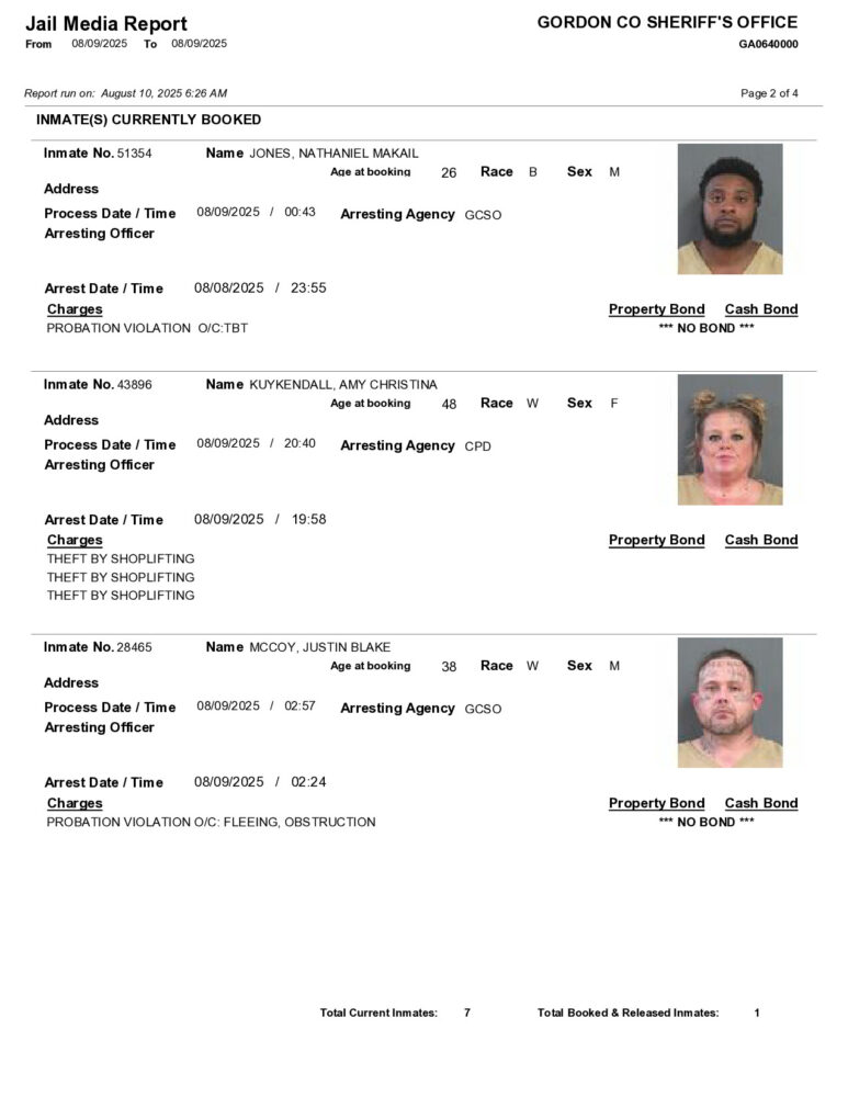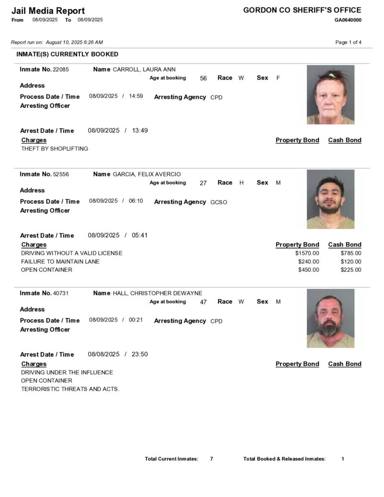 Gordon County Arrest Report 8/10/2025