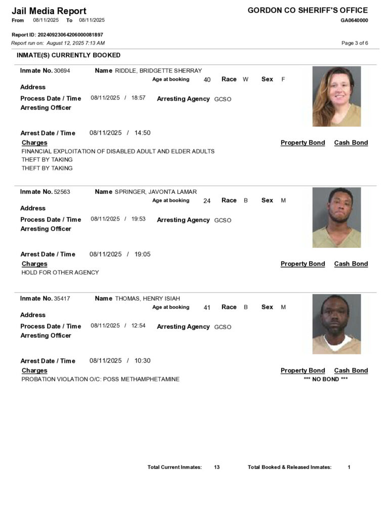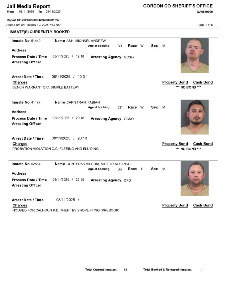 HomeArrest ReportsGordon County Arrest Report 8/12/2025Gordon County Arrest Report 8/12/2025Tue, August 12, 2025SHARE NOW ×❮❯