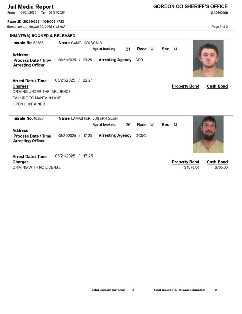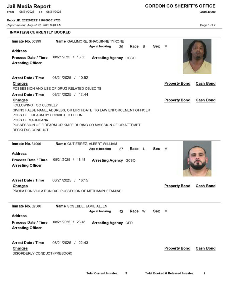 HomeArrest ReportsGordon County Arrest Report 8/22/2025Gordon County Arrest Report 8/22/2025Fri, August 22, 2025SHARE NOW ×❮❯
