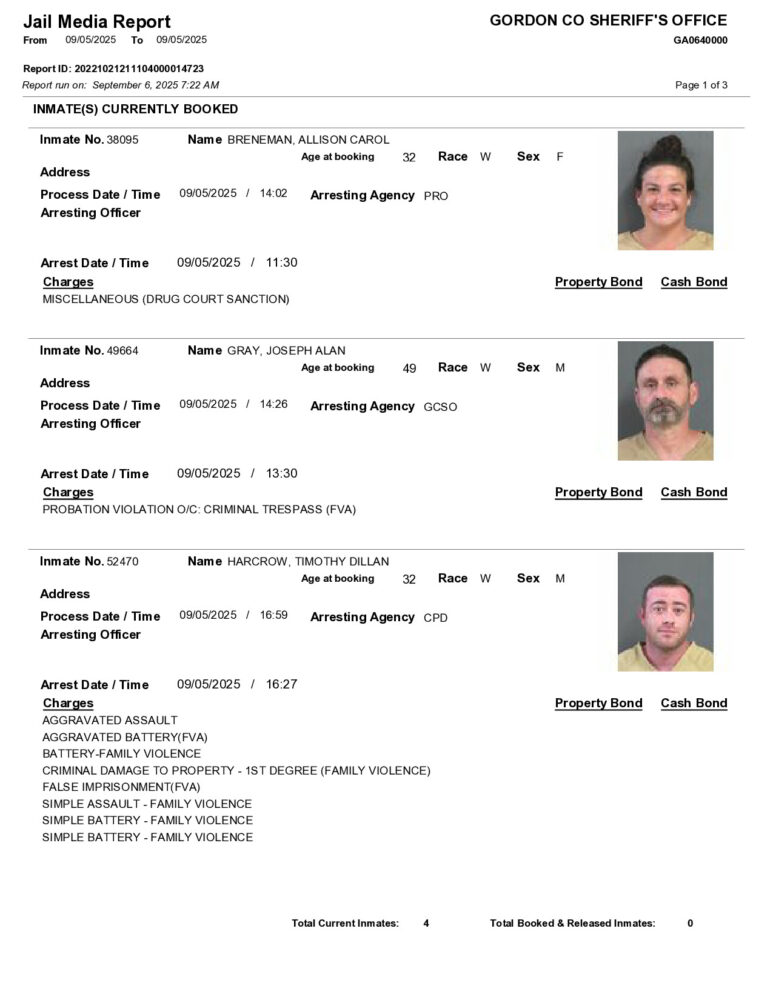 HomeArrest ReportsGordon County Arrest Report 9/06/2025Gordon County Arrest Report 9/06/2025Sat, September 6, 2025SHARE NOW ×❮❯