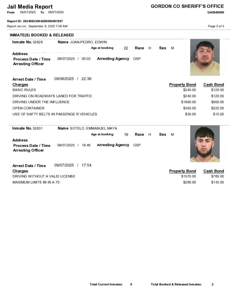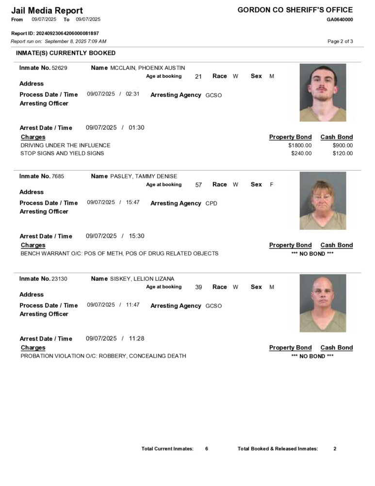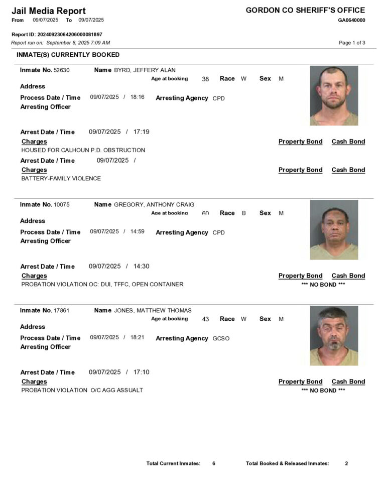Gordon County Arrest Report 9/08/2025