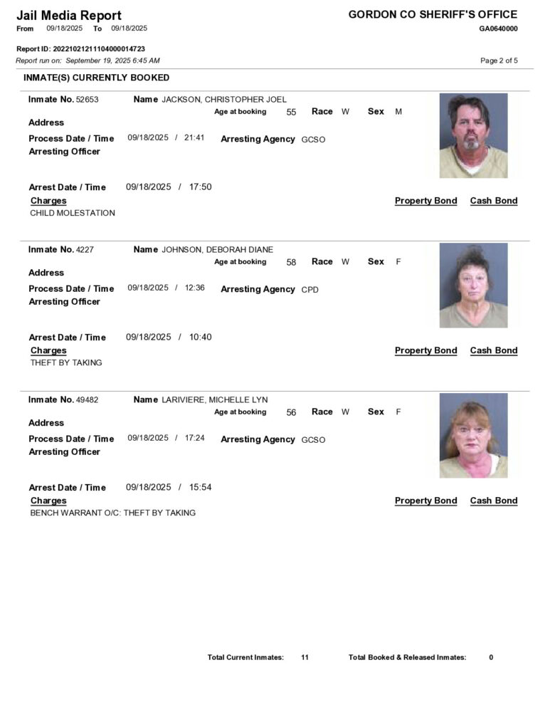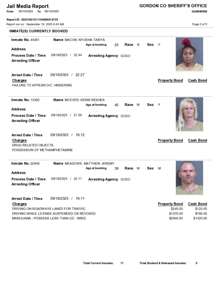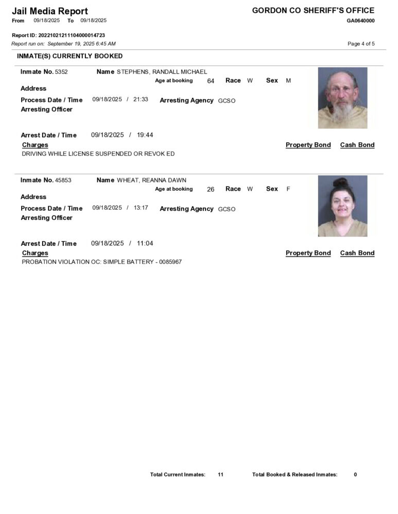 HomeArrest ReportsGordon County Arrest Report 9/19/2025Gordon County Arrest Report 9/19/2025Fri, September 19, 2025SHARE NOW ×❮❯