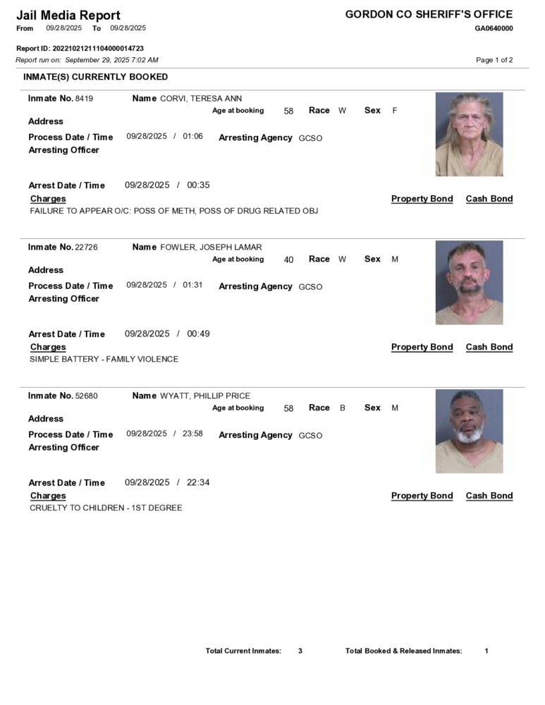 HomeArrest ReportsGordon County Arrest Report 9/29/2025Gordon County Arrest Report 9/29/2025Mon, September 29, 2025SHARE NOW ×❮❯