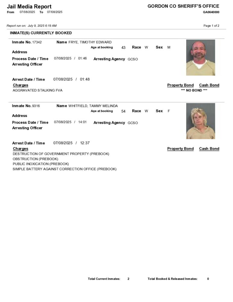 HomeArrest ReportsGordon County Arrest Reports 7/9/2025Gordon County Arrest Reports 7/9/2025Wed, July 9, 2025SHARE NOW ×❮❯