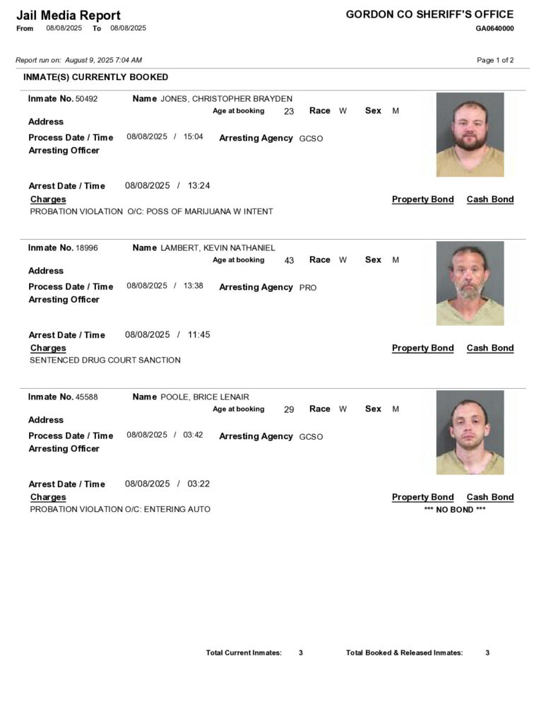 Gordon County Arrest Reports 8/9/2025