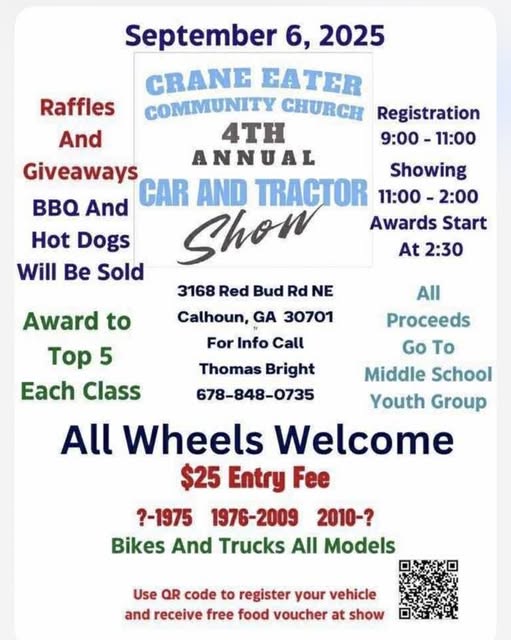 All proceeds benefit the Crane Eater Middle School Youth Group.