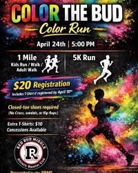 Get ready to run, walk, and get covered in color at the Color the Bud Color Run on April 24th at 5:00 PM! This fun-filled event is perfect for all ages and fitness levels.