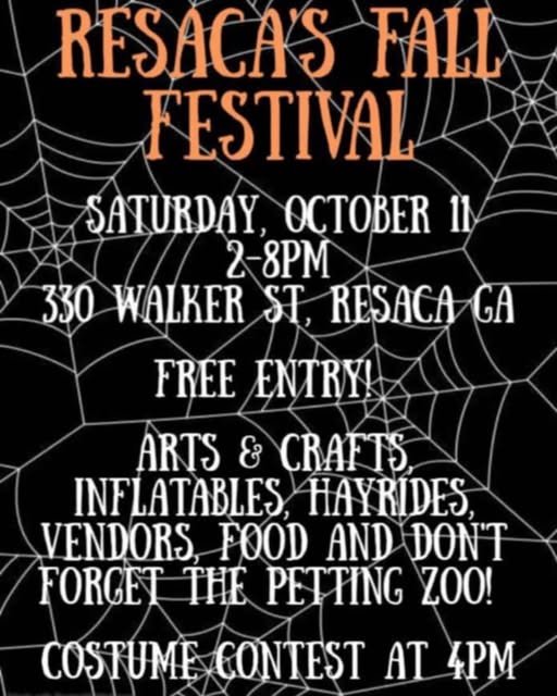 Resaca’s Fall Festival is just around the corner, bringing an afternoon of fun for the whole family on Saturday, October 11, from 2–8 p.m. at 330 Walker Street in Resaca, GA.