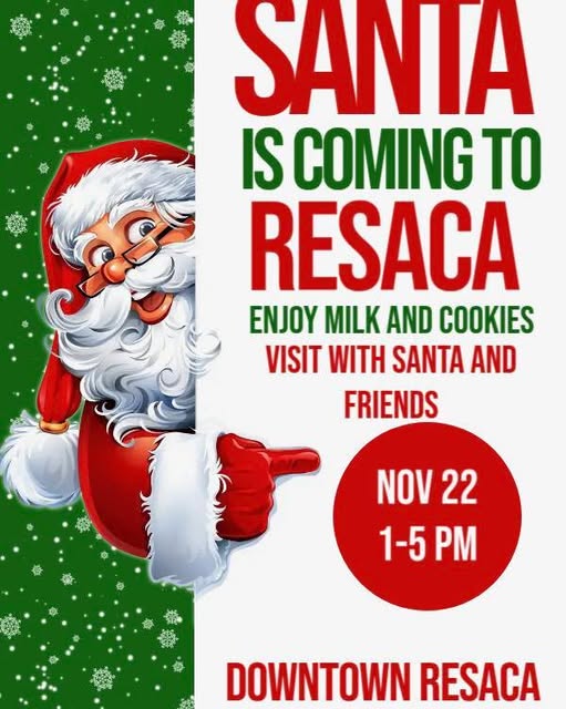 The Town of Resaca invites you to a festive afternoon with Santa Claus and friends! Bring the whole family for a magical visit filled with smiles, holiday cheer, and plenty of milk and cookies.