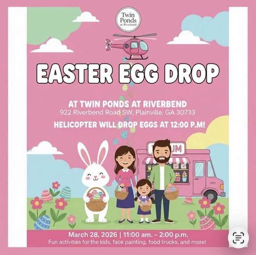 Bring your baskets, invite your friends, and hop on over for a fun-filled day at Twin Ponds at Riverbend! 🐰🌷