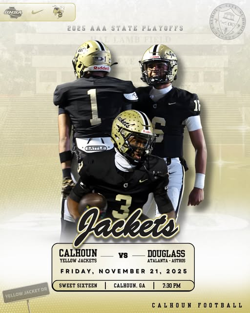 CALHOUN, GA – The Calhoun Yellow Jackets are back under the lights this Friday for the second round of the 2025 GHSA AAA State Playoffs. The Jackets will host Douglass High School from Atlanta at Hal Lamb Field, located in Phil Reeve Stadium.