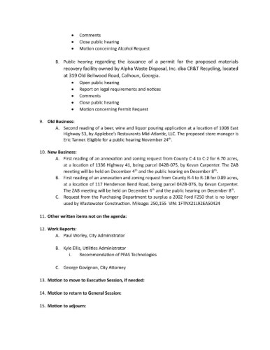 City of Calhoun Schedules Work Session and Regular Council Meeting for November 10