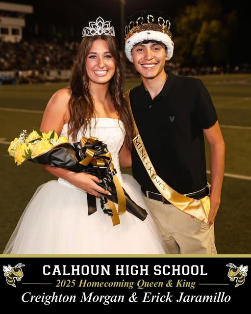 It was a night to remember for Calhoun High School as students, faculty, and fans filled the stadium for the annual Homecoming celebration. The excitement reached its peak when Creighton Morgan and Erick Jaramillo were crowned the 2025 CHS Homecoming Queen and King.