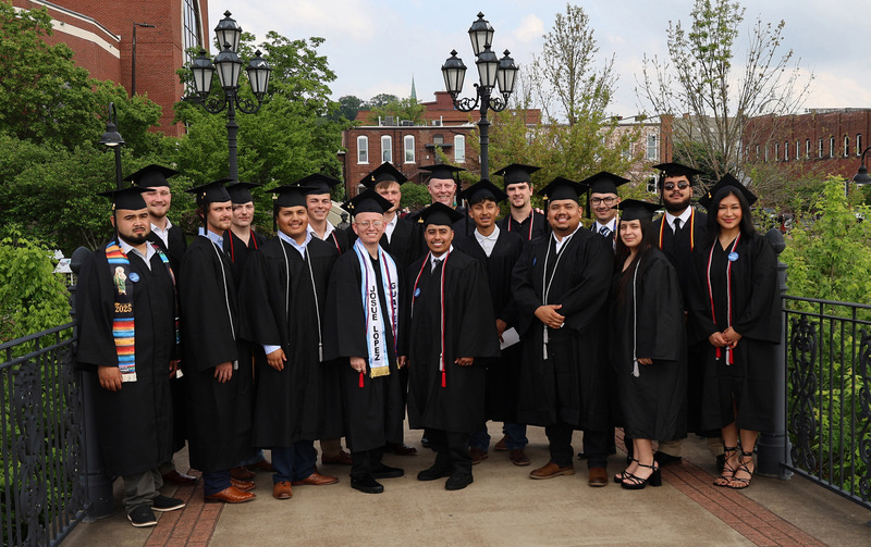 Donny Holmes, program director and instructor of Construction Management at GNTC, poses with some of his students who graduated during the April 24 ceremony. (From left, front row) Christian Delira, technical certificate of credit for Construction Manager; Jackson Taylor, associate degree in Construction Management; Rolando Reyes Cornejo, associate degree in Construction Management; Josue Daniel Lopez, associate degree in Construction Management; Eva Elizabeth Cruz Figueroa, associate degree in Construction Management; Roman Guzman, associate degree in Construction Management; Francisco J. Triana, associate degree in Construction Management; Ivana M. Martinez Franco, associate degree in Construction Management; Gabriella Ariana Hernandez, associate degree in Construction Management; (back row) Rance Edward Smith, associate degree in Construction Management; Cooper Chance, associate degree in Construction Management; Easton Childs, associate degree in Construction Management; Ryder Mitchell Smith, associate degree in Construction Management; Holmes; Haign C. Stephens, associate degree in Construction Management; Josue Lopez, associate degree in Construction Management; and Brandon O. Guzman Cornejo, associate degree in Construction Management.