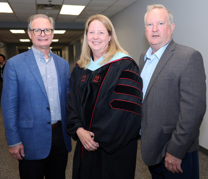 (From left) Al Hodge, member of the GNTC Board of Directors; Dr. Heidi Popham, GNTC president; and Paul Meredith, member of the GNTC Foundation’s Board of Trustees, prepare to enter the auditorium for the ceremony.