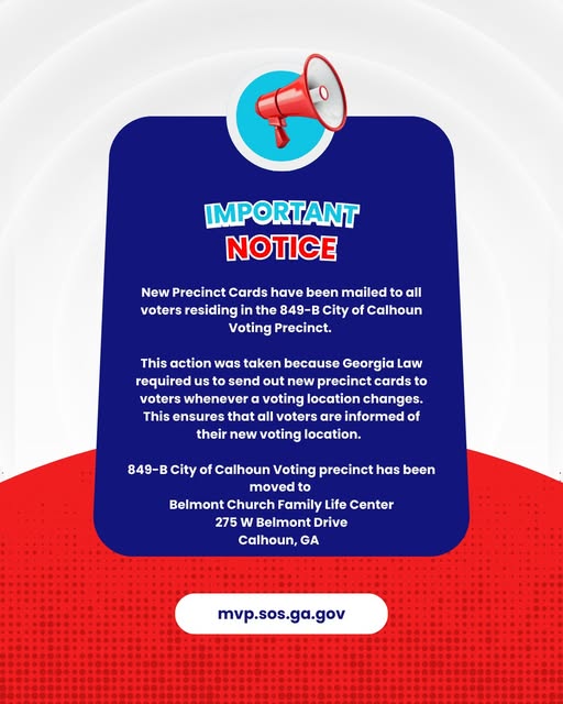 Gordon County officials are notifying residents in the 849-B City of Calhoun Voting Precinct to be on the lookout for updated precinct cards arriving in the mail soon.