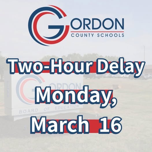 Gordon County Schools will operate on a two-hour delay Monday, March 16, due to the potential for severe weather during the morning hours.