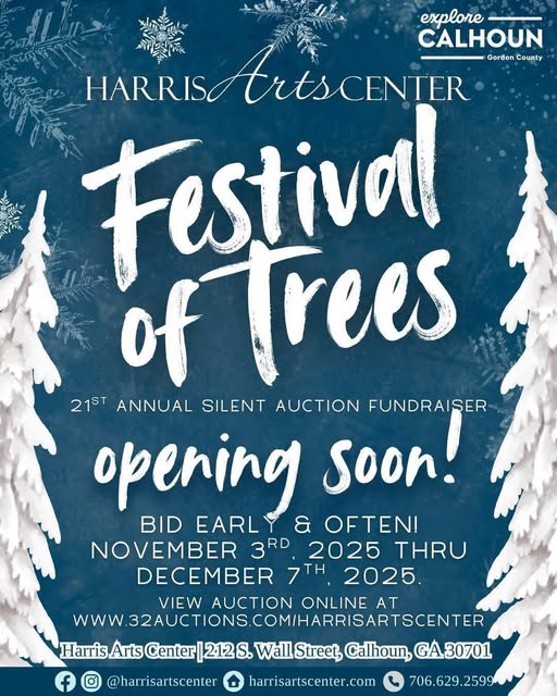 The holiday season officially begins in Calhoun as the Harris Arts Center opens its 21st Annual Festival of Trees Silent Auction Fundraiser today, Monday, November 3. The beloved community tradition runs through Saturday, December 7, giving visitors more than a month to enjoy the festive displays and bid on their favorite holiday creations.