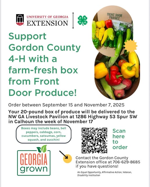 Gordon County residents have an opportunity to support local youth and enjoy the best of Georgia’s fall harvest by purchasing a farm-fresh produce box through the Front Door Produce fundraiser benefiting Gordon County 4-H.