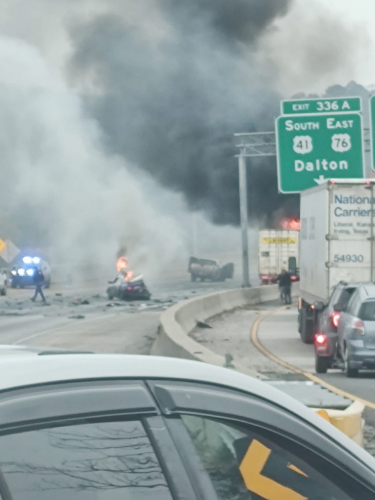 First responders are on the scene of a multi-vehicle accident on I-75 South near Exit 336 in Whitfield County. Drivers traveling southbound should expect delays and are advised to seek alternate routes until the area is cleared.