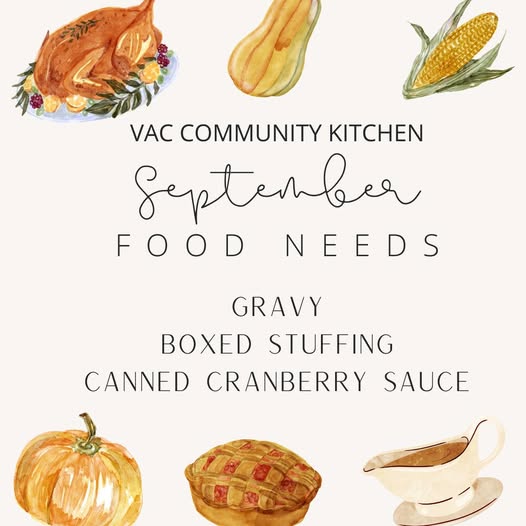 The VAC Community Kitchen is getting a head start on the holiday season and is calling on the community to lend a hand. This September, the kitchen is specifically requesting donations of gravy, boxed stuffing, and canned cranberry sauce to help prepare for upcoming Thanksgiving and Christmas meals.